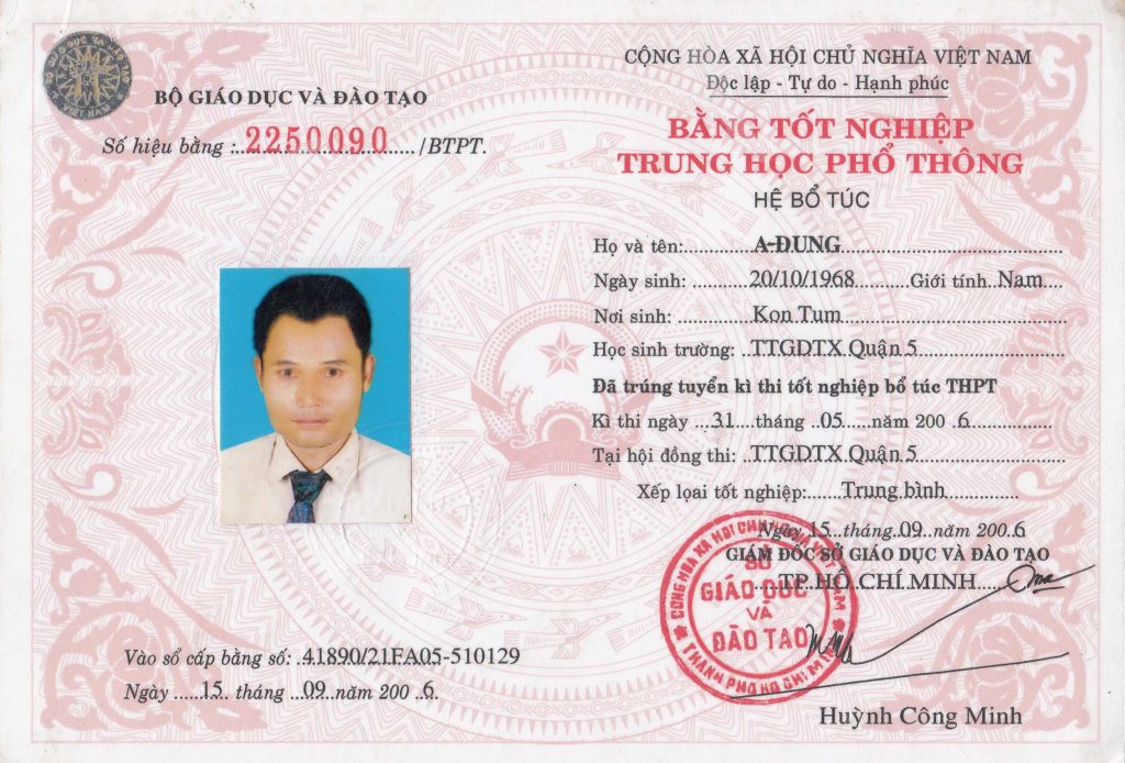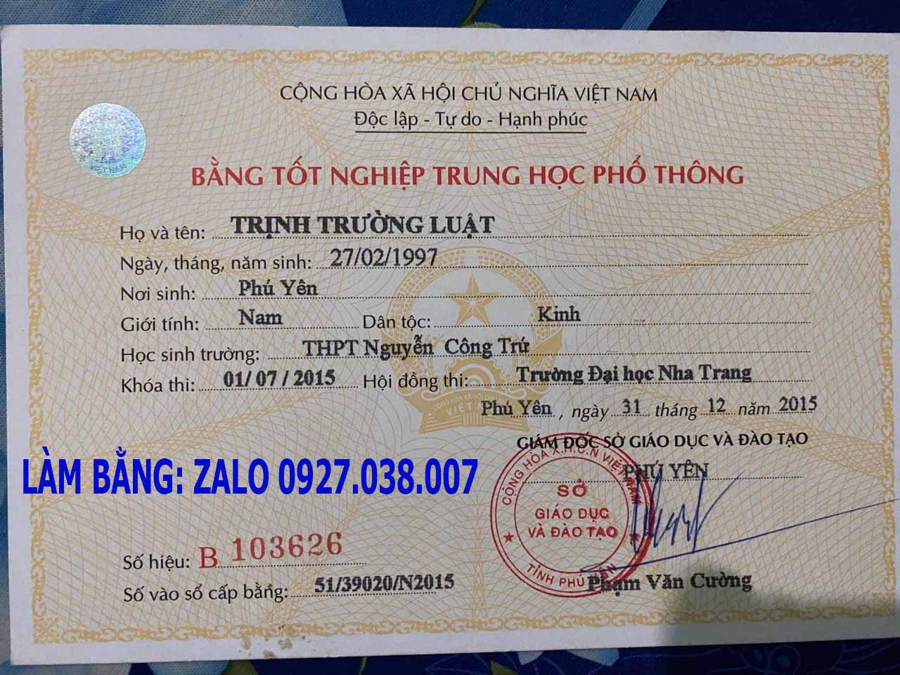 Bằng THPT – Bằng Cấp 3 Phú Yên gồm đầy đủ hồ sơ, bảng điểm và học bạ. Làm nhanh, giá rẻ, đặc biệt không lấy tiền đặt cọc trước.